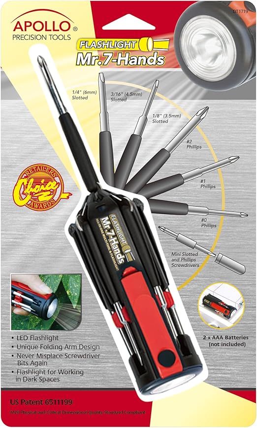 Amazon Com Apollo Tools Original Mr 7 Hands Multi Screwdriver Hand Tool All In One Patented Screwdriver 8 Screwdrivers In 1 Tool With Worklight And Flashlight Dt1719 Home Improvement